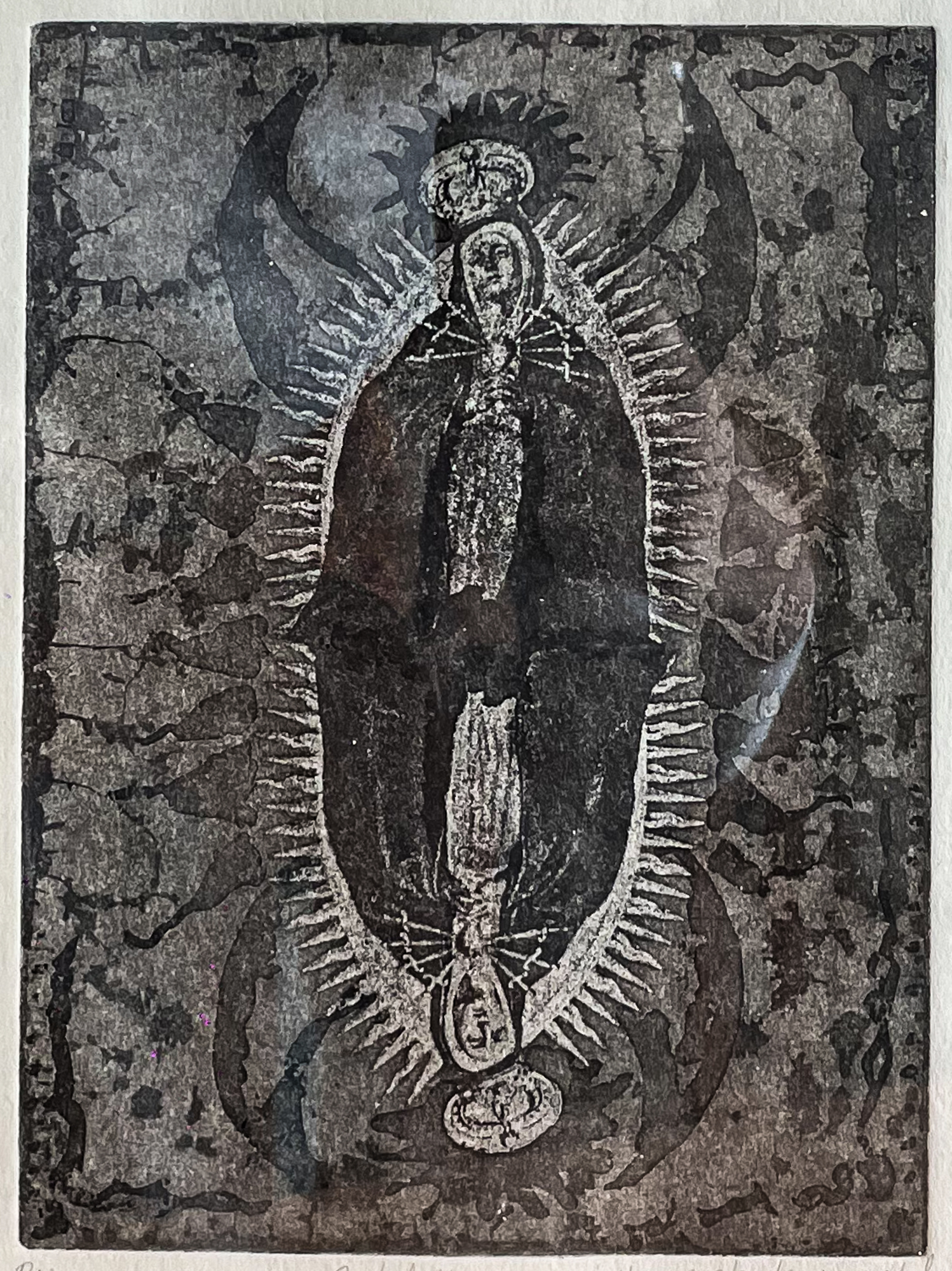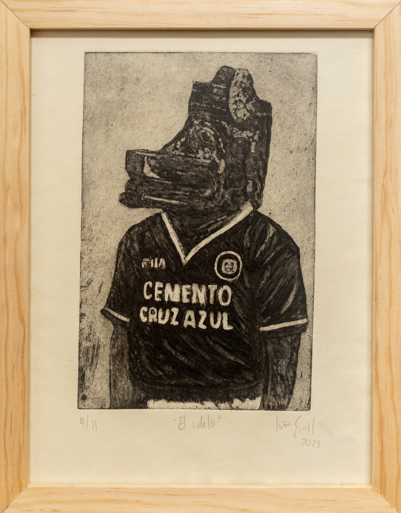 Iván Écatl. Aguatinta sobre papel artesanal producido en la Ceiba Gráfica, 22 cm x 28 cm, 2025. $3,200 mxn