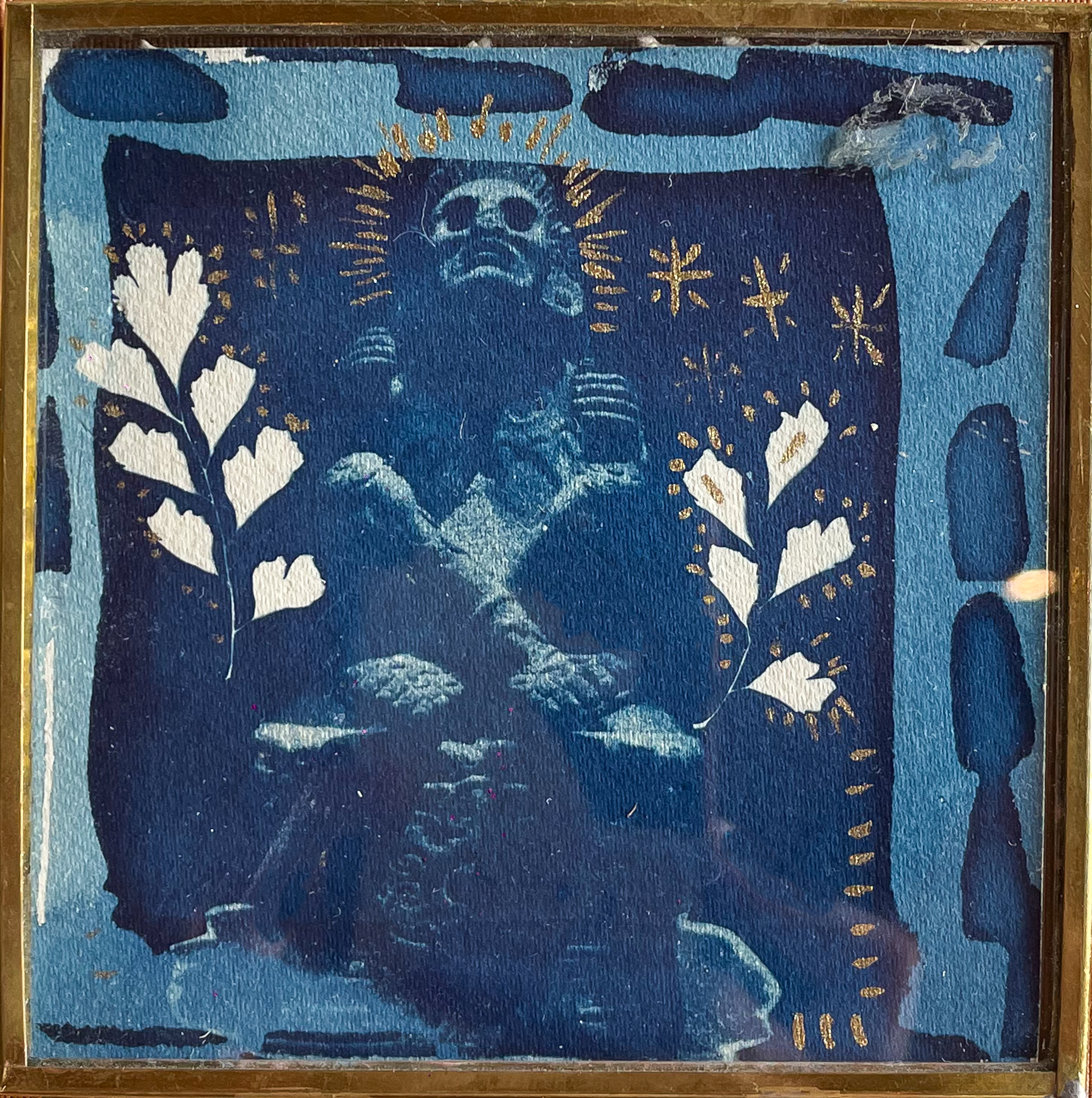 Giovanna Ramírez. Cianotipia y oro líquido sobre papel, 2025. $660 mxn