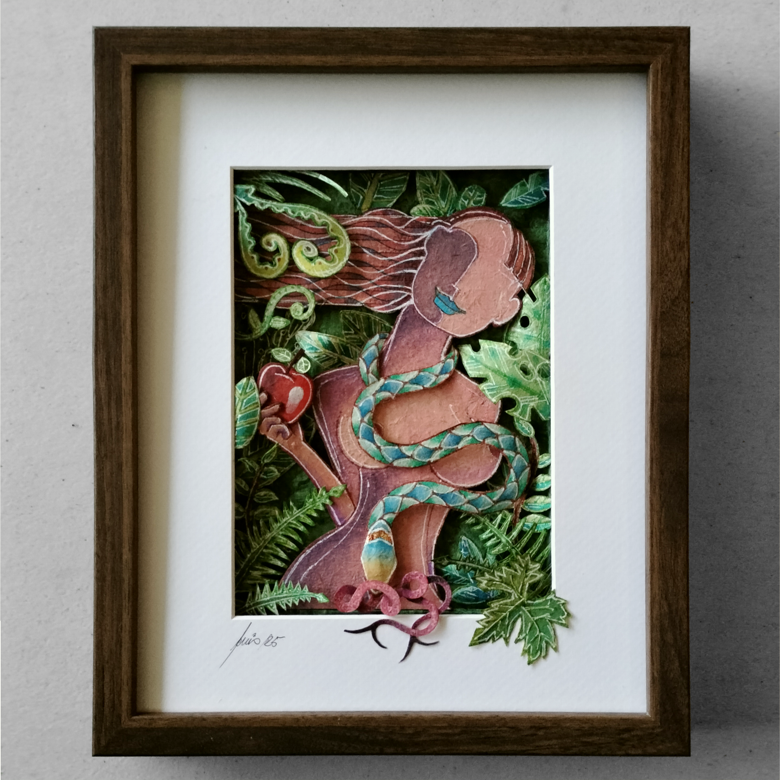 Luis Fernández de la Reguera. Acuarela con detalle de pan dorado sobre papel artesanal de pulpa de limonero almacenado por 35 años; papel recortado a mano con alma de cartulina opalina, 27 x 22 cm, 2024. $4,000 mxn