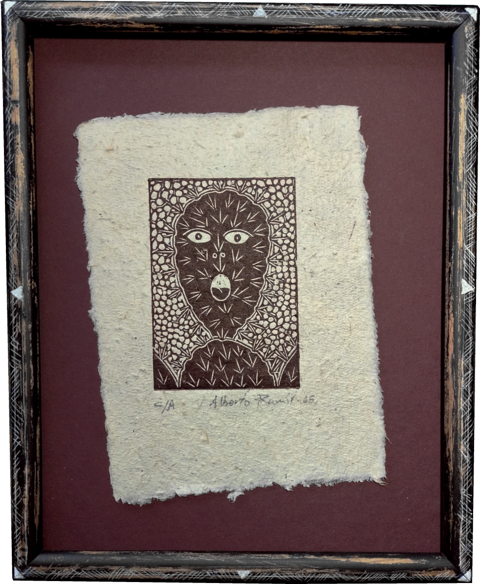 Alberto Ramir. Grabado C/A impreso sobre papel artesanal hecho con pulpa de limonero almacenado por 35 años, 27 x 21.5 cm, 2005. $1,800 mxn